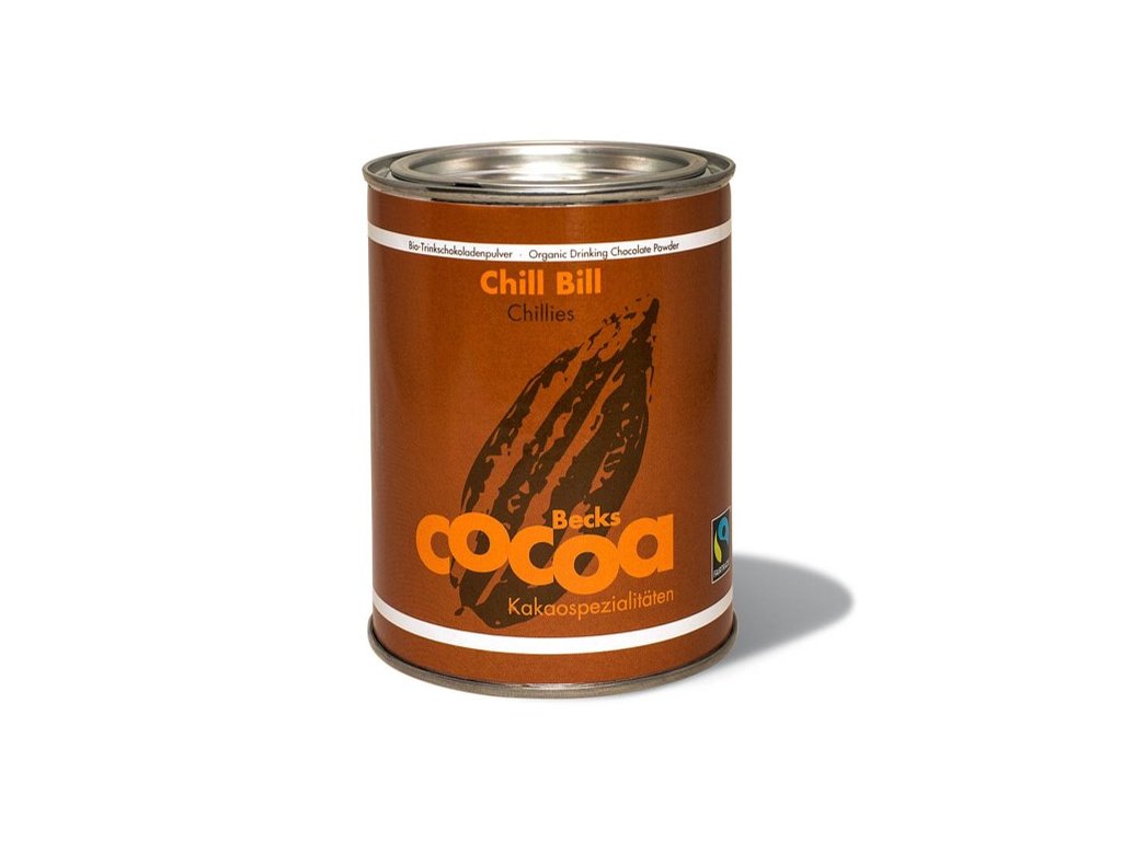 Becks Cocoa BIO rozpustná čokoláda "CHILL BILL" s jemně pikantním chilli, 250g plech