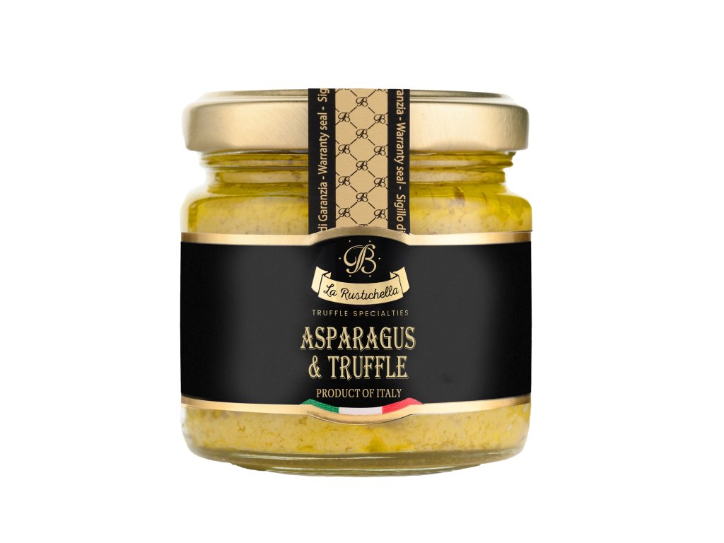 Složení: chřest 80%, slunečnicový olej, extra panenský olivový olej, sýr Reggiano 6% (mléko, syřidlo, sůl), bílý lanýž 5% (Tuber Abidum Pico), sůl, pepř, cukr, aroma bílého lanýže, regulátor kyselosti: kyselina citronová, antioxidant: kyselina askorbová.