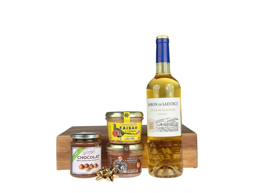 Dárkový koš francouzských paštik od Arnaud. Paštiky se mohou lišit dle skladových zásob.Barva košíku může byt přírodní dle dostupnosti. Obrázek pouze ilustrační.