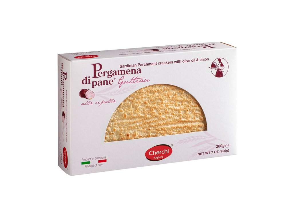 Pergamena di Pane jsou extra tenké, zlatavé a neuvěřitelně křupavé placky pocházející ze slunné Sardinie. Vznikají jen ze čtyř jednoduchých ingrediencí – semoliny z tvrdé pšenice, vody, droždí a soli –, díky čemuž vynikají čistou chutí a vysokou kvalitou. Jejich jemná slanost a lehká struktura dokonale podtrhnou jakékoli chutě. Skvěle se hodí k sýrům, uzeninám, rybám i masu, ale také k džemům, pomazánkám nebo čokoládovým krémům. Ač vypadají jednoduše, jejich výroba je poctivým procesem, který spojuje moderní technologie s tradičními sardinskými postupy. Výsledkem jsou křehké placky, jemnější a tenčí než klasický pane carasau – ideální jako lahodná svačina nebo elegantní doplněk ke studeným předkrmům.Složení: mletá semolina z durum PŠENICE, olivový olej, cibule (4%), sůl, pivovarské kvasnice.