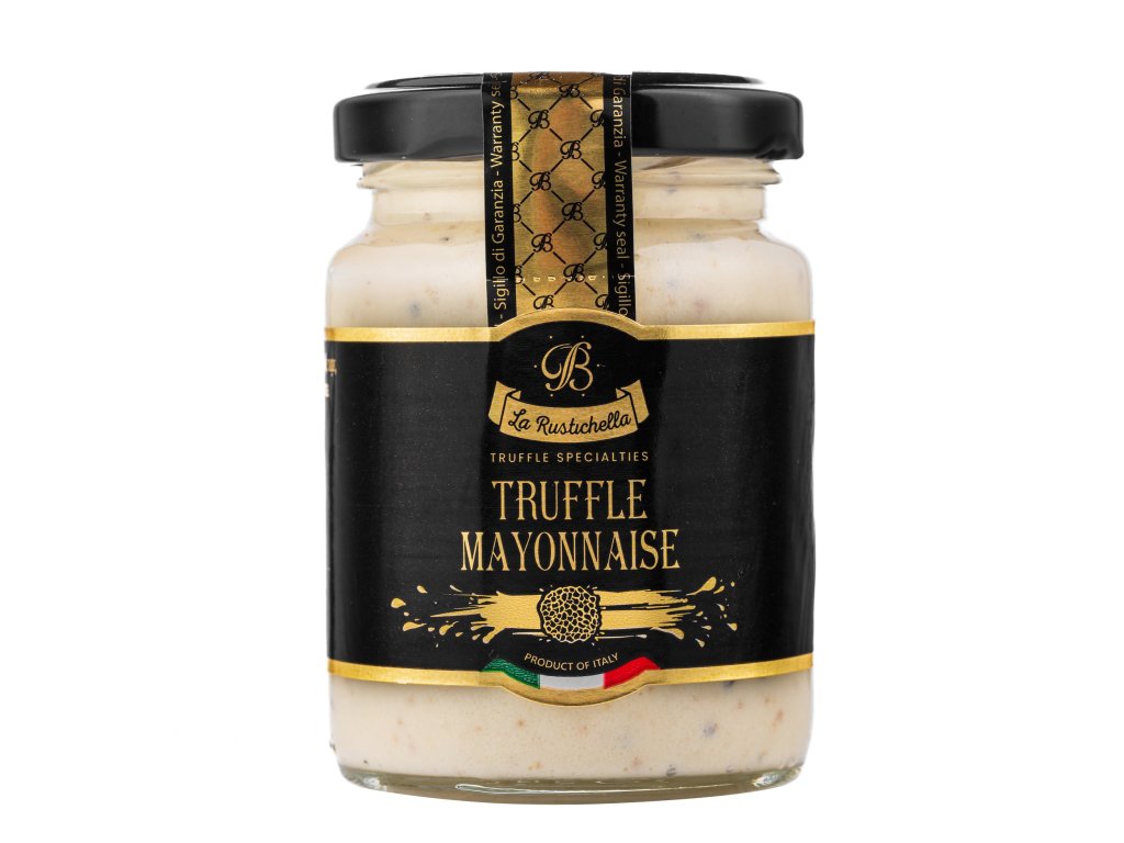 Složení: majonéza (sójový olej, voda, kvasný ocet, pasterizovaný váječný žloutek, cukr, sůl, modifikovaný kukuřičný škrob), černý lanýž 2 % (Tuber Aestivum Vitt), aroma černého lanýže. Regulátor kyselosti: kyselina citronová.