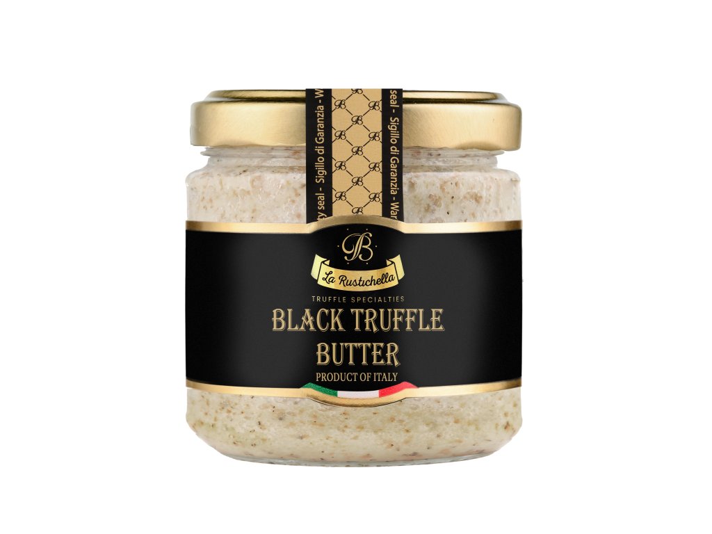 Složení: máslo 94%, černý lanýž 5% (Tuber Aestivum Vitt), sůl, aroma černého lanýže, kyselina mléčná (E270).