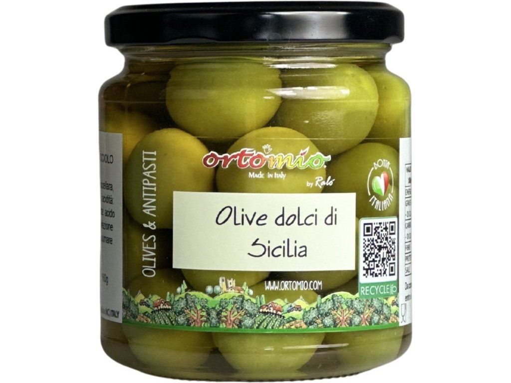 Třicetileté zkušenosti společnosti a usilovná práce umožnily Ortomio získat pro své výrobky důvěru zákazníka. Sortiment společnosti zahrnuje více než 80 produktů, které jsou neustále aktualizovány podle vkusu a trendů spotřebitelů. Produkty GMO se ve výrobě nepoužívají. Zelenina a suroviny pocházejí z vybraných italských farem. Společnost má více než 25 let zkušeností s pasterizací produktů. Tato zkušenost v kombinaci s kontrolním systémem zajišťuje vysokou kvalitu produktu a zachovává všechny organoleptické vlastnosti, tzn. nezměněná chuť, textura a barva.Složení: Zelené olivy Nocellara, voda, sůl, regulátor kyselosti: kyselina mléčná antioxidant: kyselina askorbová.
