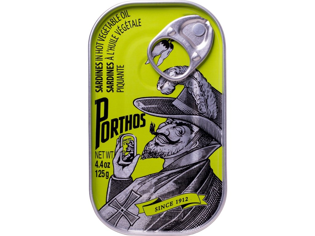 - Porthos, zavedená společnost na konzervované ryby v přímořském městě Matosinhos v Portugalsku, exportuje vysoce kvalitní sardinky pocházející z okolních vod, lovené udržitelnými metodami. Velké, masité a chutné sardinky nejsou uzené, ale vařené, a ručně balené buď do olivového oleje, pálivého rostlinného oleje, nebo do jemné či pikantní rajčatové omáčky – marinády tak lahodné, že je možná budete chtít přelít přes salát.