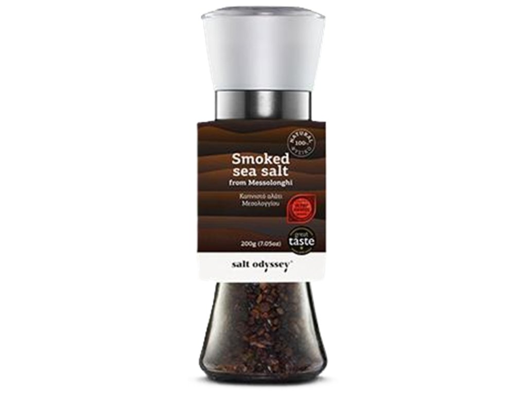 Složení: 100% přírodní mořská sůl z Messolonghi, uzená na bukovém dřevě (140 hod.).
