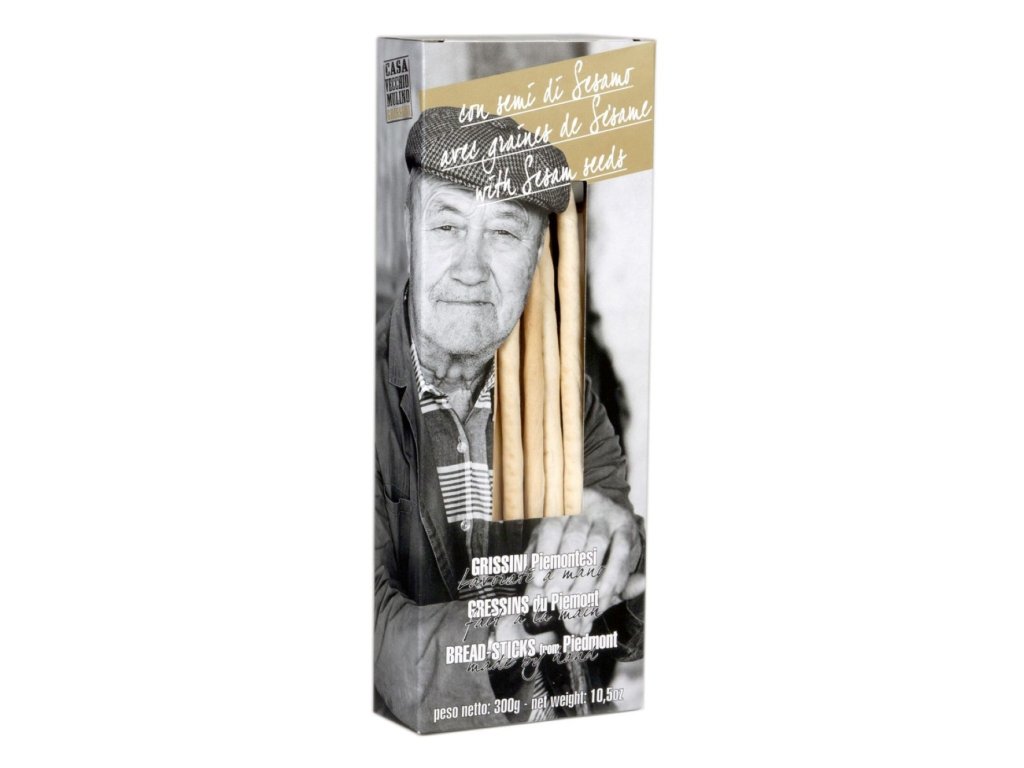 Rodinná tradice pekařství Casa Vecchio Mulino sahá až do roku 1860, kdy byl v piemontském městečku Pino Torinese upečen první chléb a grissini rubata. Díky ruční výrobě, pomalému kynutí těsta a pečlivě vybraným surovinám si tyto křupavé a zlatavé tyčinky získaly pověst nejen v Turíně, ale postupně i po celém světě – skvěle se hodí k vínu, sýrům nebo jako samostatná lahodná svačinka a přinášejí pocit domácí pohody přímo ke stolu.Složení: PŠENIČNÁ mouka, vepřové sádlo, sůl, CELOZRNNÝ SLAD, pivní kvasinky, sezam 2 %. Výrobek může obsahovat sóju, mléko a hořčici. Alergeny jsou vyznačeny VELKÝMI PÍSMENY tučně.